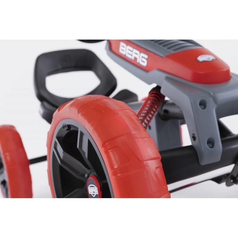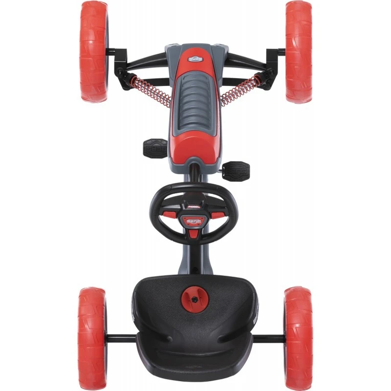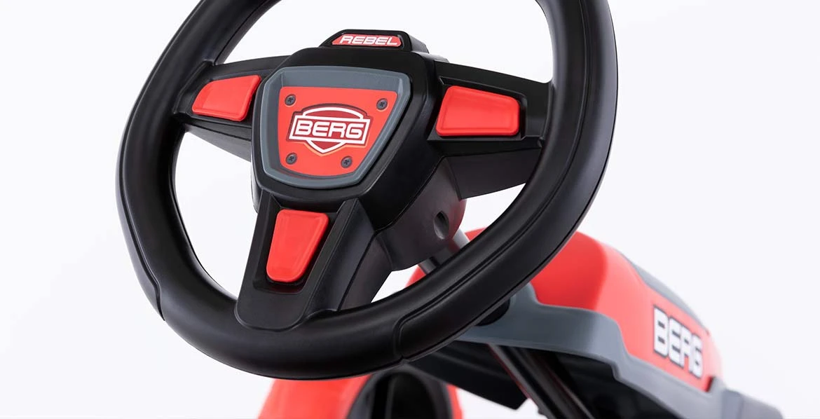 Off-road rijden is ongekend leuk met de Rebel! Kinderen vanaf 2,5 jaar kunnen al skelteren op deze opvallende Reppy. De felrode EVA 10” inch off-roadbanden, de stoere voorspoiler, de rode veren en het unieke sportstuur zorgen voor een opvallend stoere verschijning. Het sportstuur is standaard uitgerust met échte soundbox. Deze soundbox heeft 4 verschillende tonen: remmen, toeteren, de motor starten en gas geven.