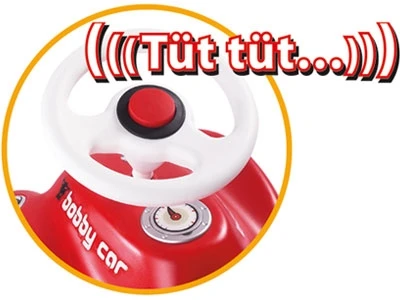 Met de Big-New-Bobby-Car presenteert BIG de nieuwe generatie loopauto’s. Nog altijd met een perfecte ergonomie, maar door zijn gestroomlijnde carrosserie geheel van de 21ste eeuw. Standaard voorzien van een stuur met brede greep en hoogwaardige fluisterwielen. Achter de snelhiedsmeter bevindt zich een geheime ruimte.