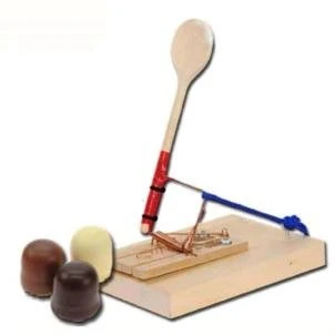 - De knutsel- set bevat: een grondplaat, muizenval, houten lepel, 2 ronde stokken, schroeven,metaaldraad, tape en touw.