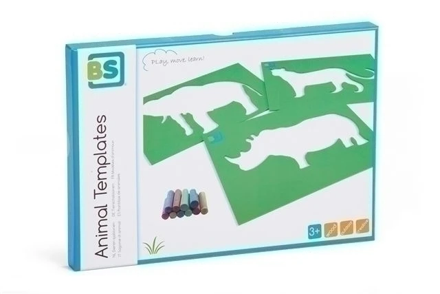 Set van 3 degelijke houten sjablonen van wilde dieren ( neushoorn, olifant, luipaard)