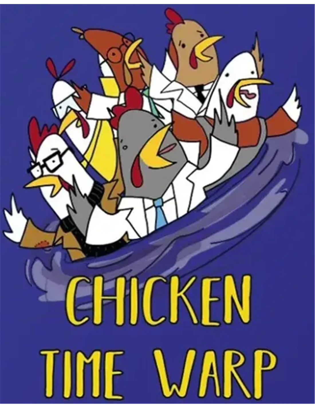 While experimenting with time travel, a group of scientist chickens accidentally open an endless time vortex. Their lab and everything in it are sucked inside and only one chicken will escape alive. Battle against time and each other in this hilarious game that pays homage to all things time travel!