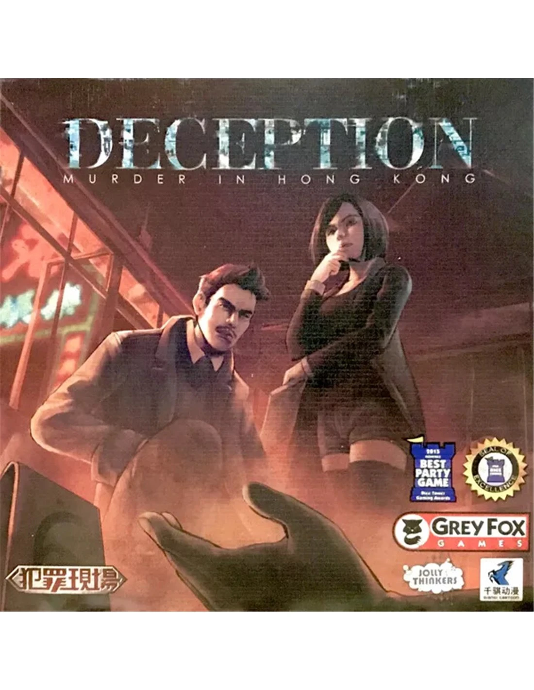 Deception: Murder in Hong Kong is a game of deduction and deception for 4-12 players that plays in about 20 minutes.