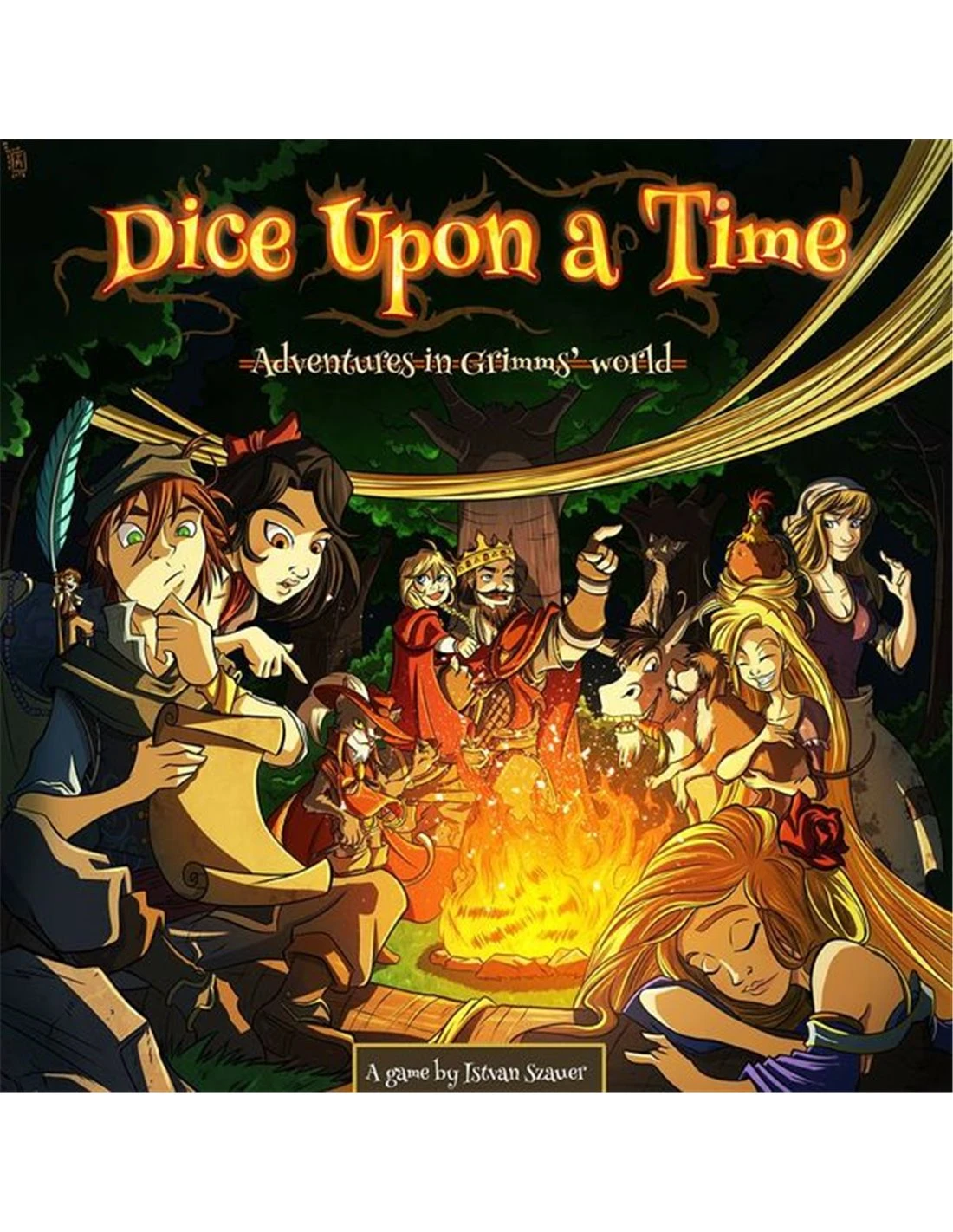 Dice Upon a Time is a family adventure game which takes you to the fabulous fairy-tale world of the Grimm Brothers. You will play the most popular Grimm characters, such as Little Red Riding Hood, Snow White, Puss in Boots, Sleeping Beauty and The Musicians of Bremen, while completing Quests for Adventure Points. As you progress in the game you will encounter old friends in familiar places, employ Magic Items, and build your strategy on story fragments as well as on the unique abilities of the main characters.