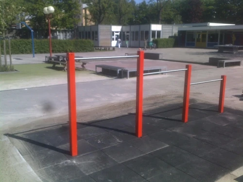 Dit duikelrek bestaat uit verticale, zwaar uitgevoerde thermisch verzinkte en gepoedercoate staanders met daartussen 3 rvs duikelstangen voor een optimale gladde draaibeweging. De staanders zijn standaard gepoedercoat in de kleur rood en dienen gebetonneerd te worden. Een zeer solide en onderhoudsarm speeltoestel voor vele jaren plezier.