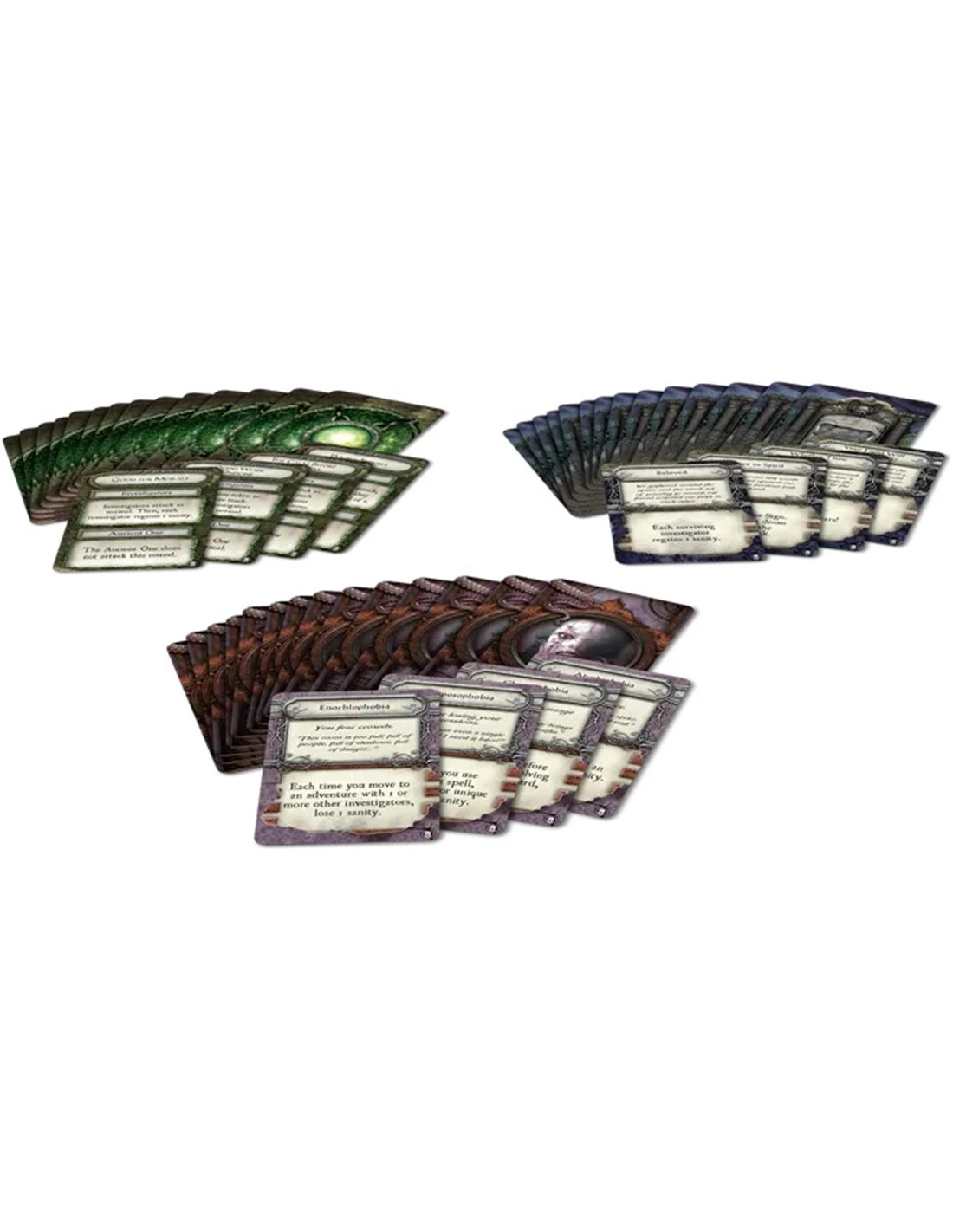 All three of these decks and their cards can be used together or separately, and they’re all fully compatible with the core game, as well as all of its expansions. Whether you use one deck, or all of them, you’ll find they increase the challenge and drama of your Elder Sign adventure. Even more, they’ll immerse you more deeply into its world and help you connect more fully to the investigator that you’re playing.