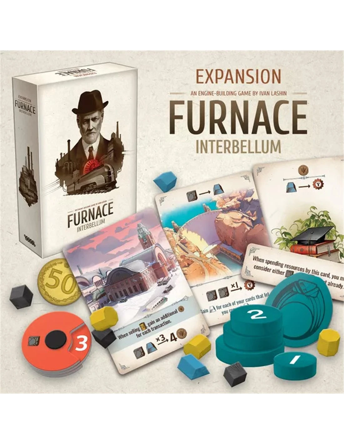 Furnace expands into the twenties and thirties of the twentieth century — the interwar period known as the interbellum. In this expansion, you will find new Company cards and Capitalists, new abilities, Manager tokens, variable Capital discs, a set of components for a fifth player, and new Agents for two-player and single-player games. All of this exists within beautiful industrial buildings and structures from the epoch of Art Deco, Constructivism, and Bauhaus.
