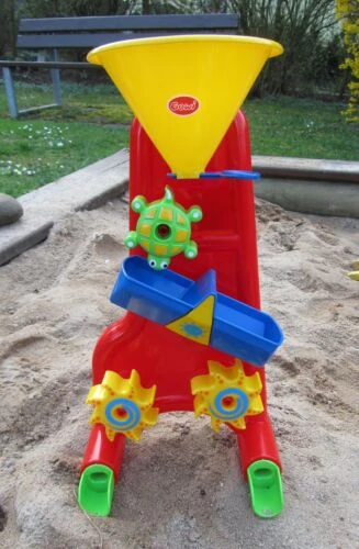 De molen heeft het perfecte formaat, waardoor kinderen bovenaan de trechter fijn zand of water kunnen toevoegen en via de schuifregelaar weer los gelaten worden. Door de voetjes valt de molen ook niet snel om. De verschillende delen zijn optimaal met kinderhandjes te bedienen en het molentje is niet zwaar en makkelijk te verplaatsen.