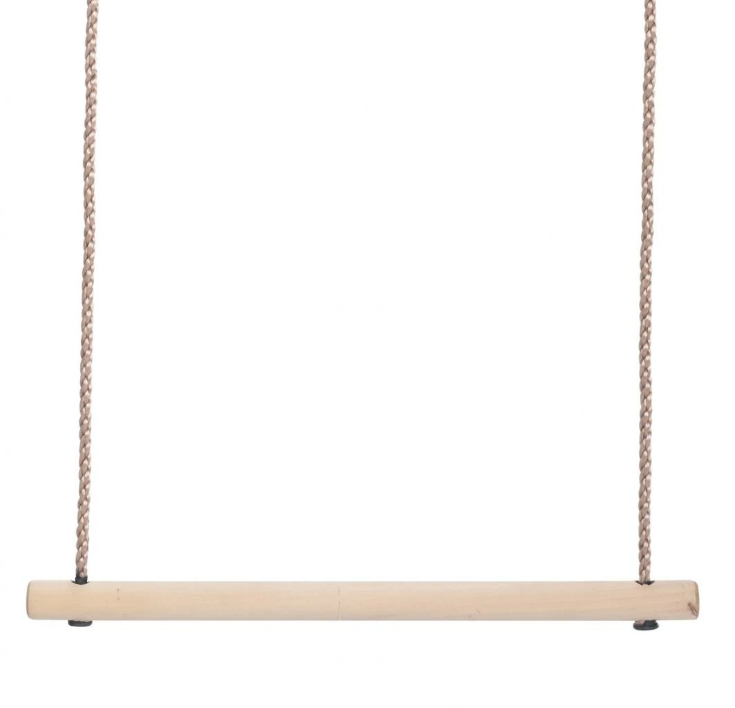 Houten trapeze met polypropyleen touwenset. Uitgerust met stelachten waardoor de touwen eenvoudig in lengte gesteld kunnen worden.