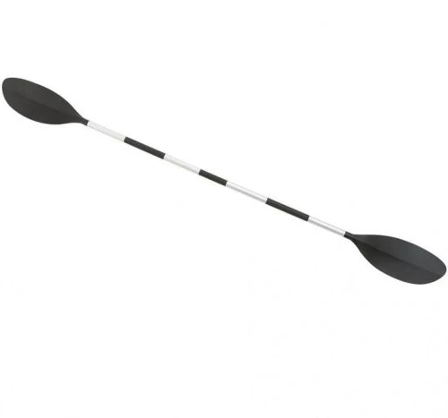 De Intex kajakpeddel heeft kunststof peddelbladen met een geribbelde structuur voor maximale performance. De stevige aluminium steel is voorzien van twee handgrepen voor optimaal peddelcomfort. Bij het in elkaar klikken van de peddel kun je de peddelbladen in drie verschillende standen ten opzichte van elkaar zetten, en zo de kajakpeddel geheel aanpassen aan jouw manier van peddelen.