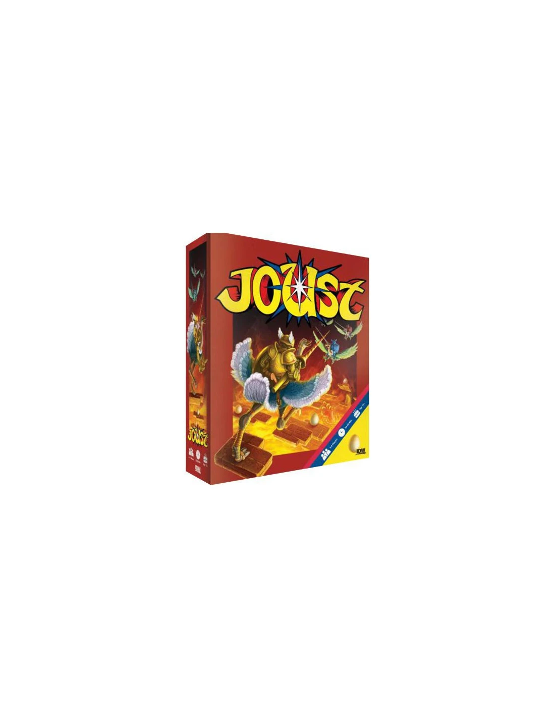 Joust brings the classic video arcade game to the tabletop in an action-packed, strategy board game. Requiring players to manage the speed and altitude of their knight, Joust features a unique momentum system that has players playing cards that immediately move their knight, but repeat effects for turns to come. Act quickly, but think ahead, because in the game of Joust speed can be your greatest ally — or biggest foe.