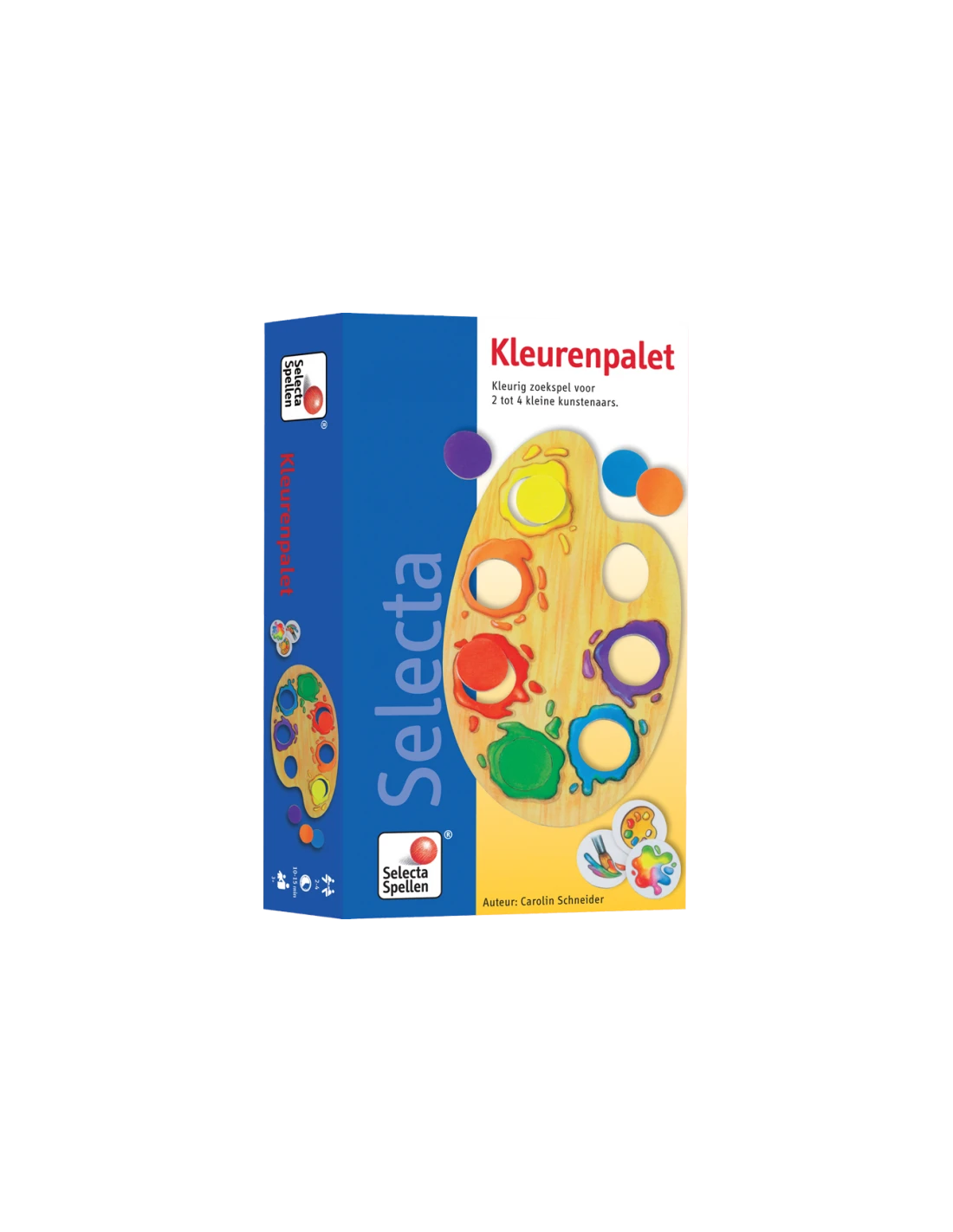 Oh dear, Mr. Klecks the artist has stumbled and all of his paints have fallen onto the floor. Who can help him sort the colored paints correctly onto the palettes? It’s not really all that difficult: first the lighter colors, yellow and orange, then red and of course, blue and green – look carefully at your palette. Now you’ve just got to find the right colors, which are lying around all mixed up, and you are only allowed to turn over one colored tile at a time. Can you remember which tile lies where? Watch very carefully which colors the other players have turned over and then you should be alright. Have you found all of the colors and sorted them correctly onto the palette? Quickly shout out “Klecksolino” and then you’ve won.