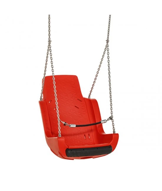 De KBT Special needs swing ‘kettingset’ is gemaakt van rotatiegegoten HDPE, een 6 mm kettingset en speciaal gemaakt voor kinderen met speciale behoeften. De stoel is voorzien van een schokabsorberende bumper. De stoel is verkrijgbaar in vier kleuren rood, groen, blauw en limegroen. De versie ‘kettingset’ heeft een veiligheidsketting in roestvrij staal.