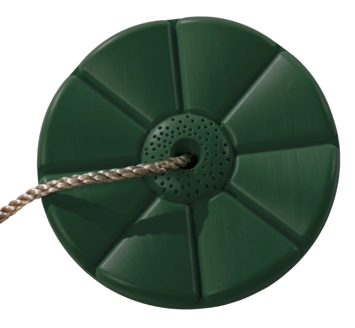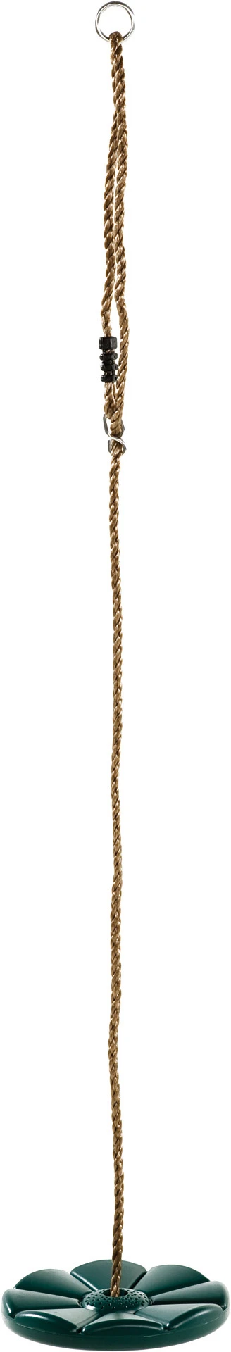 Kunststof schotelschommel met 10 mm. polypropyleen touwenset. Stalen ring en stelacht, touwverbinding middels kunststof las.