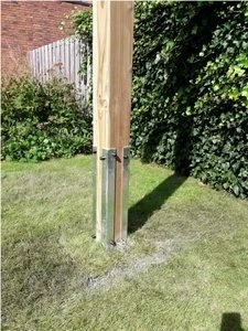 Aan te bevelen is gebruik te maken van een post saver. Dit om aantasting van het hout op maaiveld niveau tegen te gaan.