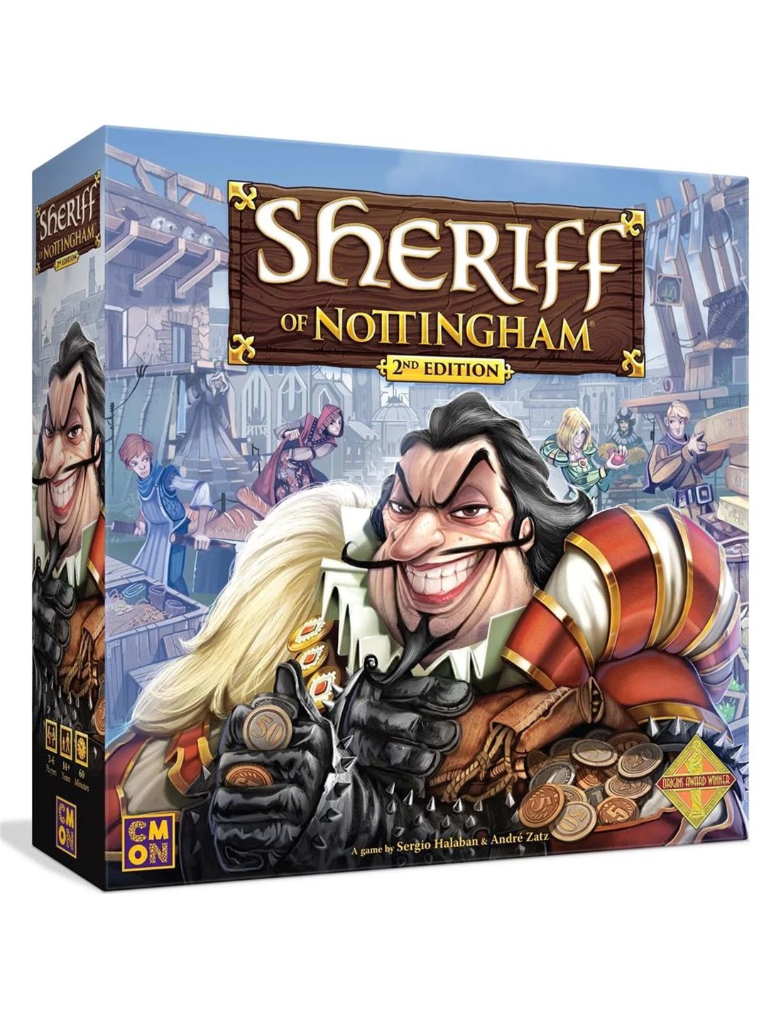 In Sheriff of Nottingham 2nd Edition, players take turns playing the Sheriff, looking for contraband goods, and the Merchants trying to stock their Stall with the best goods. The Sheriff can inspect any bag they want, but they must be careful, as they’ll have to pay a penalty if they find the Merchants were telling the truth. This new edition includes updated rules, as well as expansions such as the 6th Merchant, Black Market, and Sheriff’s Deputies.