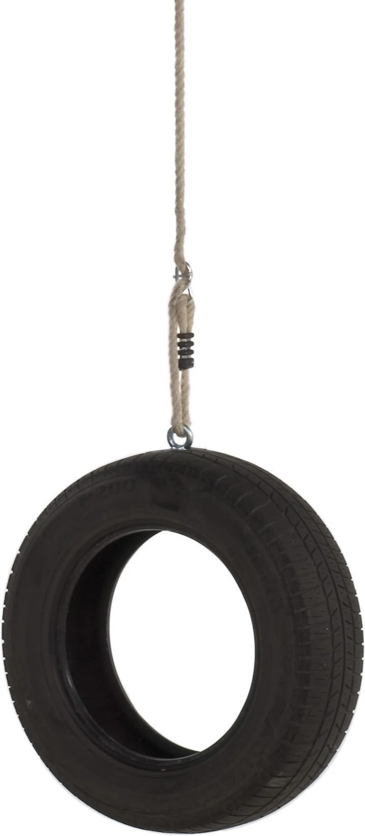 Autobandschommel met 1 touw en dan zwieren als de apen. Geschikt voor een schommelbalkhoogte van 2,15 – 2,50 m. De rubberen tweedehands band wordt opgehangen middels een 12 mm. PH touw, waarvan de stelacht en het ophangoog gegalvaniseerd zijn en de touwverbindingen zijn voorzien middels kunststof lassen.