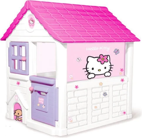 Met een deur en raam die open kunnen, een gordijn met Hello Kitty design en een leuk luik voor de huisdieren.