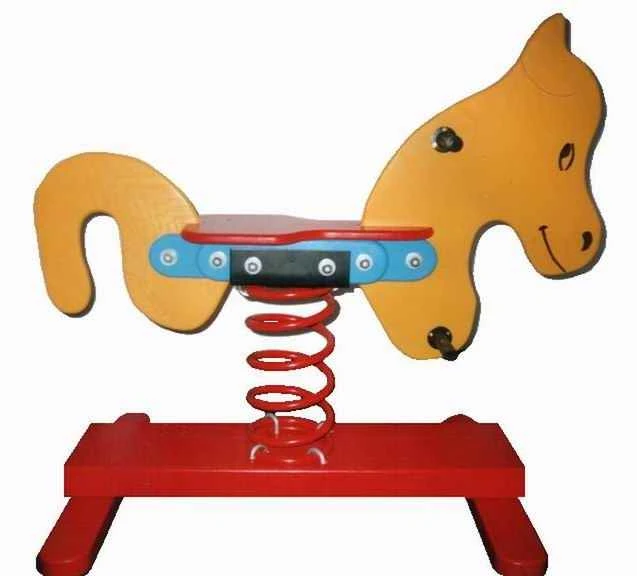 Leuk veerpaardje, zowel binnen als buiten te gebruiken. Zowel de voet als het paardje zijn gemaakt van hout.