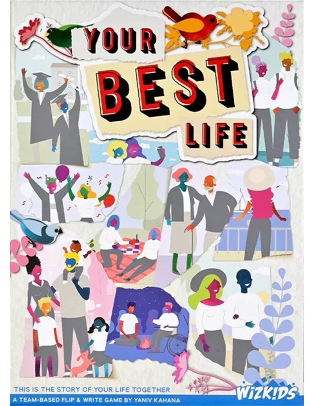 Your Best Life is a flip-and-write life story game. Playing as couples or singles, players manage their happiness and joy as they experience various choices in their lives. Each turn, players choose cards with the actions that will build their character and family unit. Players mark their actions on their individual or family sheets in order to “live” the most successful life!